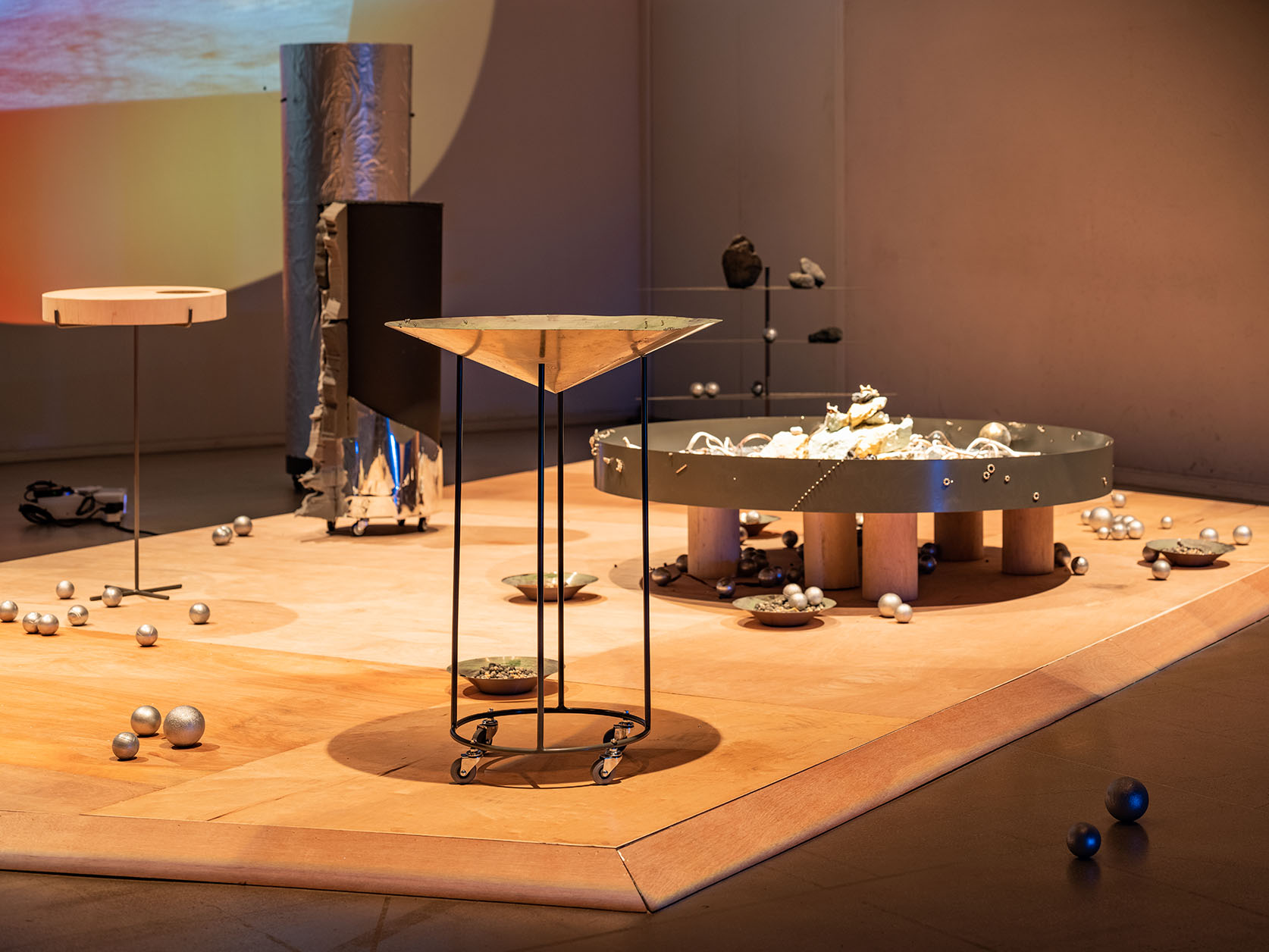 The Subjective Cloud_tin, beads, magnets, iron, rubber wheels_ 2022