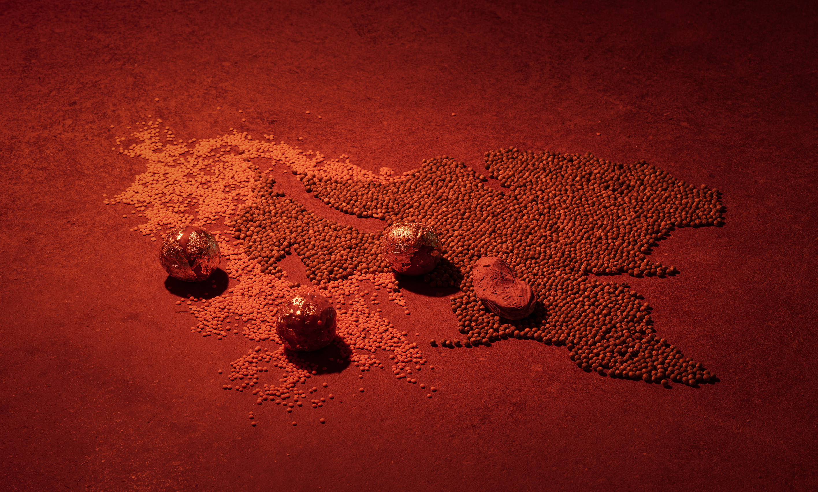 CHANGE OR TRANS-HIKING(2022) is an extension of what the themes explored in ways viewers connect to and engage with surrealist imagination. This project is an embodiment of a transcendental habitat that threads through the human, the machine, animals and plants, object-things without language, and contemporary liquid concepts flowing through the temporality of the past-present-future. I unfolds an ungrammatical cosmology in which objects on a micro scale become political subjects. This entailed giving material form to imagined spaces, from the hideouts of wild animals and microorganisms in urban landscapes to passageways echoing with auditory hallucinations and the deep abyss of the earth as a portal space leading to other worlds.